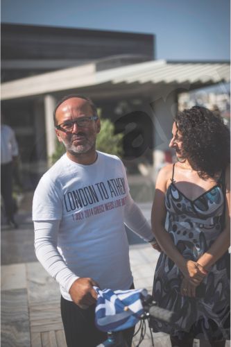 Έξω από το μουσείο της Ακρόπολης βρέθηκε το πρωί, ο Ιταλός καθηγητής Salvatore Lo Sicco, κρατώντας την ελληνική σημαία.