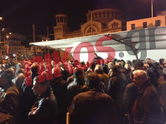 Μεγάλη είναι η προσέλευση του κόσμου στο Λιμάνι του Πειραιά, απέναντι από τον Ιερό Ναό του Αγ. Διονυσίου, στη συγκέντρωση διαμαρτυρίας των ναυτεργατών.