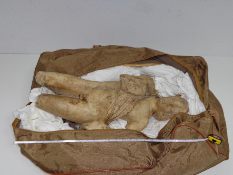 Στην οικία του 70χρονου συλληφθέντα βρέθηκε και κατασχέθηκε, μεταξύ άλλων, μεγάλος αριθμός αρχαίων αντικειμένων, μεταξύ των οποίων το προαναφερόμενο εξαιρετικά σπάνιο μαρμάρινο άγαλμα της ελληνορωμαϊκής περιόδου (1ος αιώνας π.Χ.), του γλύπτη της αρχαιότητος Πραξιτέλη, με προέλευση από την Αρκαδία, ύψους 0.65 μ. (δεν σώζονται τα κάτω άκρα από το ύψος των γονάτων).