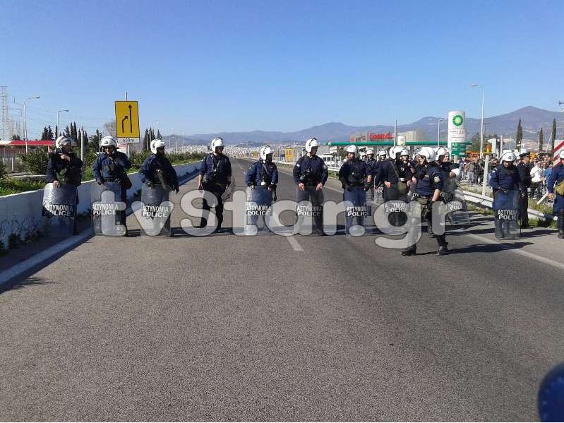 ΦΩΤΟ-Έκλεισαν για 20 λεπτά την εθνική Αθηνών Λαμίας