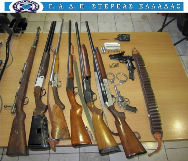 Πέντε κυνηγετικά όπλα, εκ των οποίων τα 3 τα κατείχε νόμιμα.