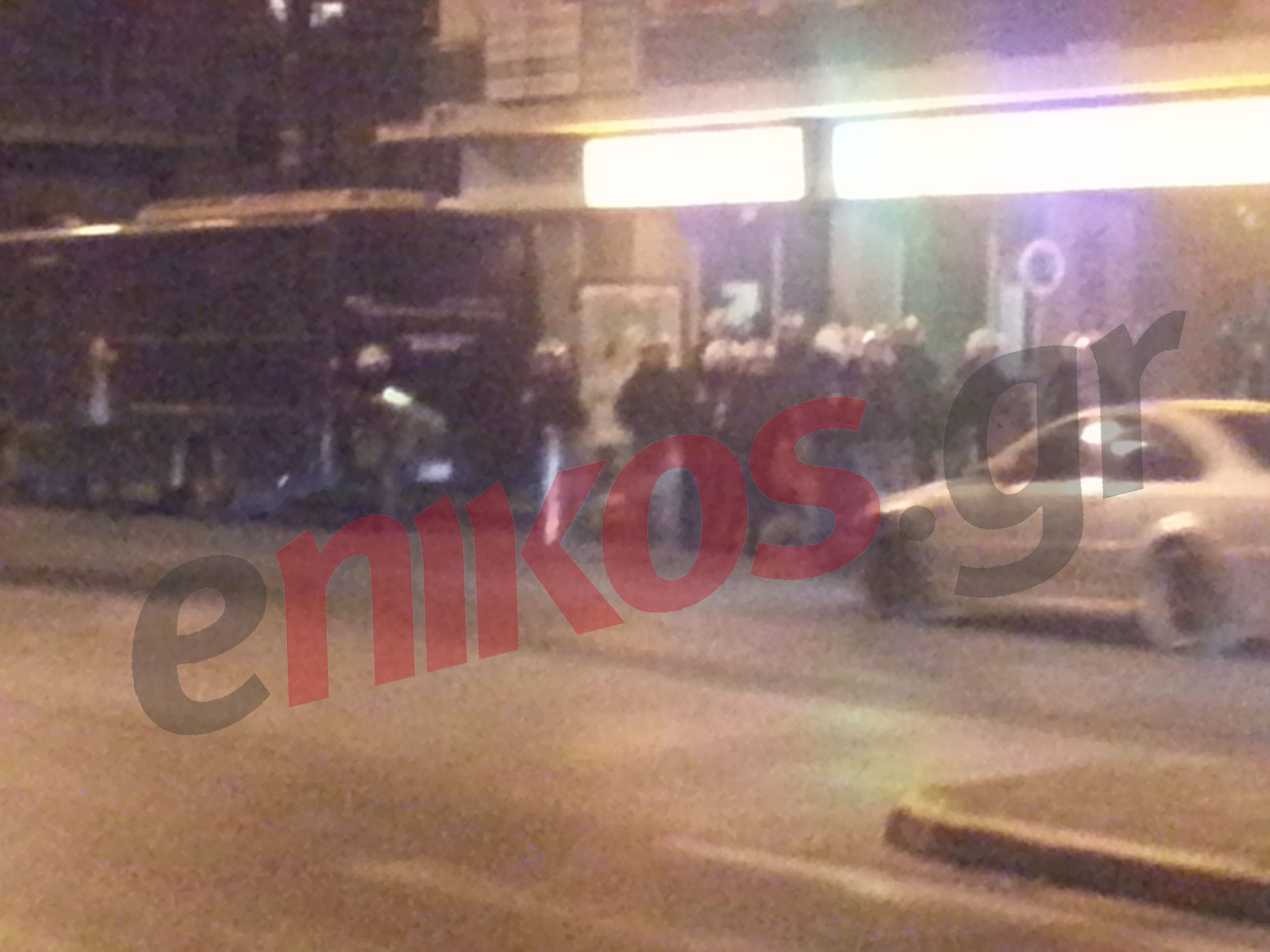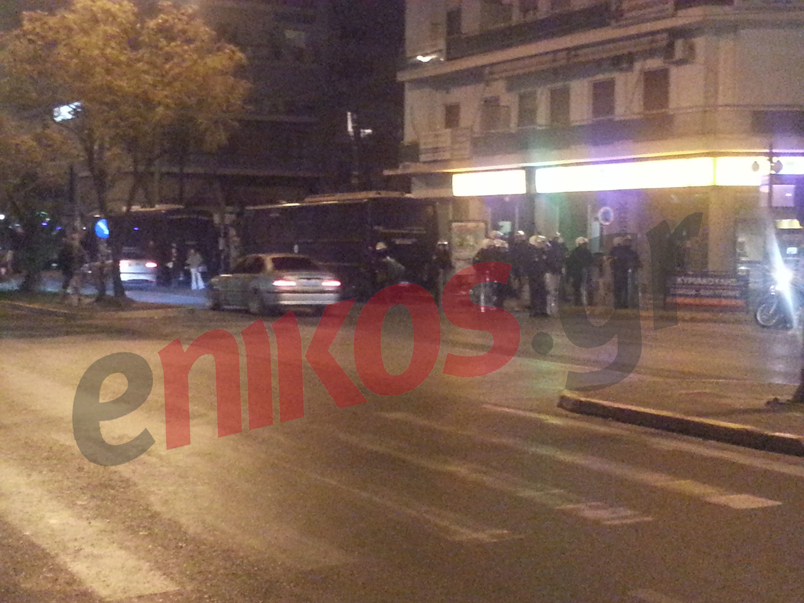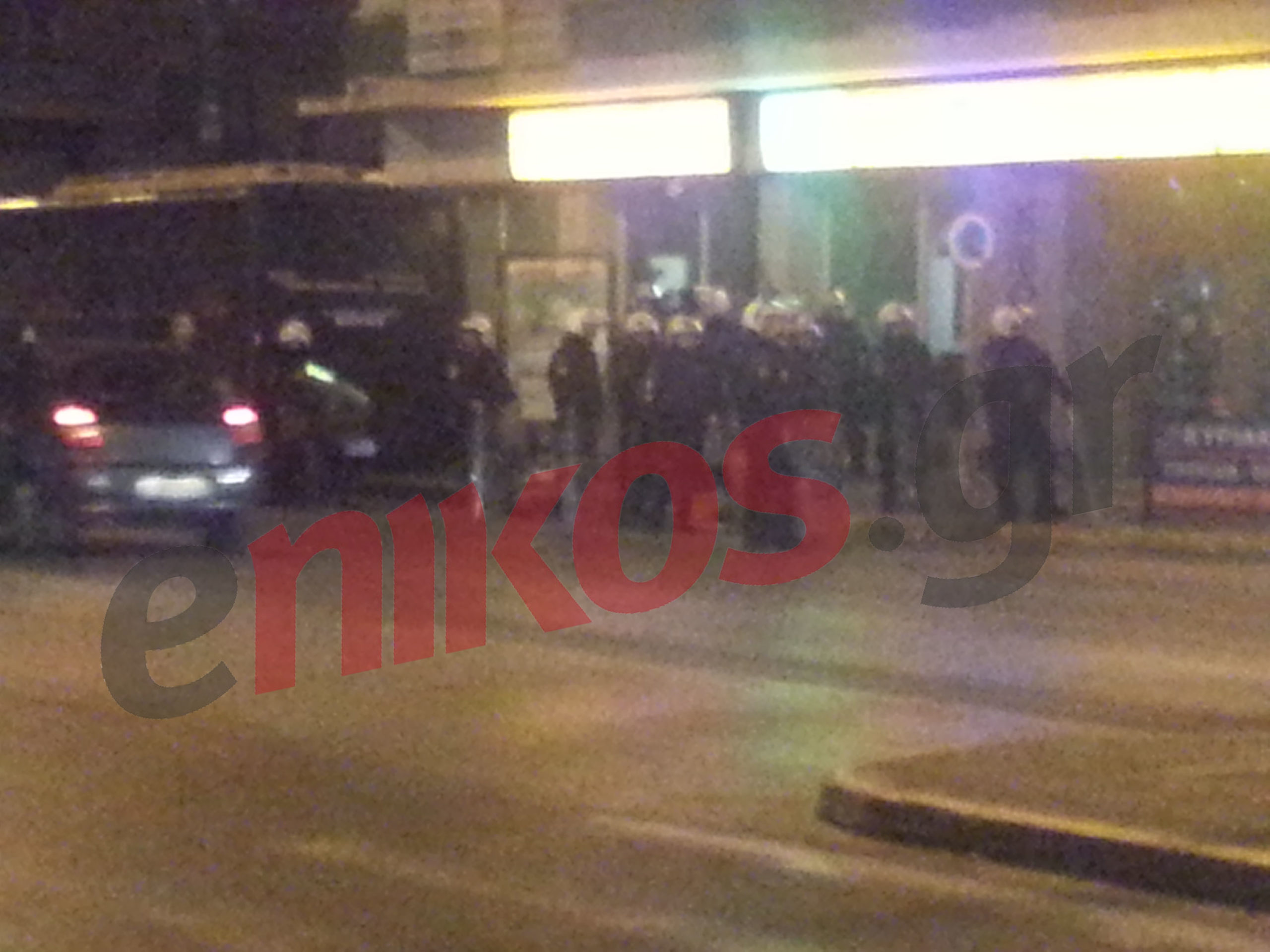 Άνδρες των ΜΑΤ έκαναν χρήση χειροβομβίδων κρότου-λάμψης και απομάκρυναν τους συγκεντρωμένους.