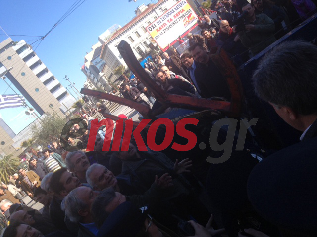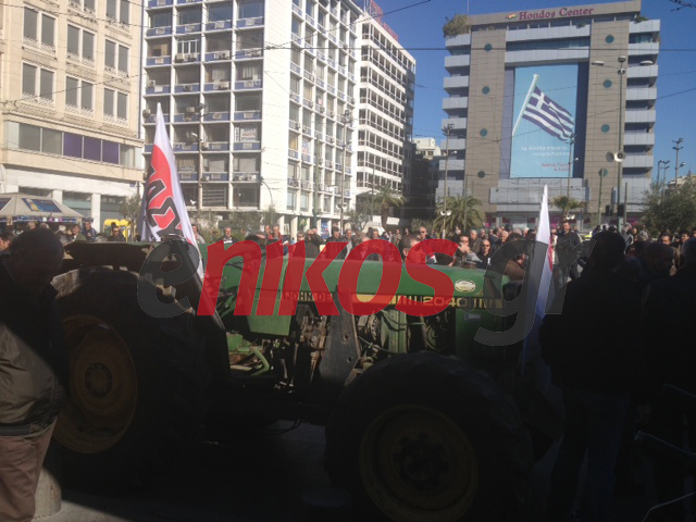 Ένταση προκλήθηκε νωρίτερα μεταξύ μελών του ΠΑΜΕ και αντρών της Τροχαίας όταν έκαναν την εμφάνισή τους στην Ομόνοια, άτομα τα οποία επέβαιναν σε δυο τρακτέρ.