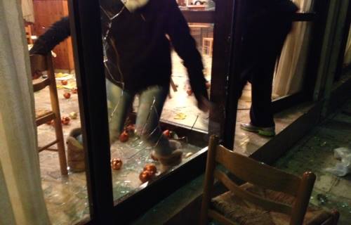 Φωτό-Επίθεση κουκουλοφόρων σε μαγαζί στο Αγρίνιο