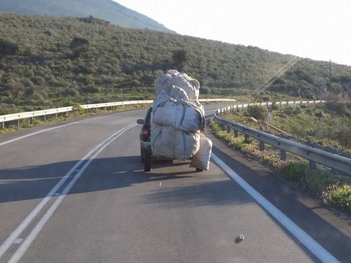 Ο οδηγός του αυτοκινήτου που βλέπετε στη φωτογραφία έσπειρε ένα τσουβάλι κουτάκια αναψυκτικών και μπύρας στην εθνική οδό Ναυπάκτου -Ιτέας . Καθώς οδηγούσε, τα κουτάκια, που κυριολεκτικά είχε τσουβαλιάσει σε μια πρόχειρη κατασκευή πίσω από το αυτοκίνητο, έπεφταν με κάθε ευκαιρία αποτελώντας πραγματικό κίνδυνο για τα διερχόμενα αυτοκίνητα και τις μηχανές.