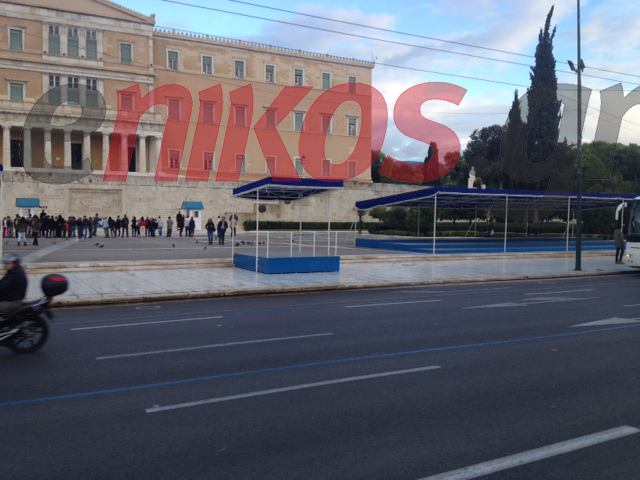 Τα συνεργεία του δήμου Αθηναίων έστησαν την εξέδρα των επισήμων στο Σύνταγμα εν όψει της αυριανής μαθητικής παρέλασης στην πρωτεύουσα. Όπως είναι γνωστό και φέτος η παρέλαση θα πραγματοποιηθεί υπό δρακόντεια μέτρα ασφαλείας. Απέναντι από την εξέδρα των επισήμων θα επιτρέπεται η πρόσβαση μόνο σε όσους έχουν πρόσκληση από τον δήμο.