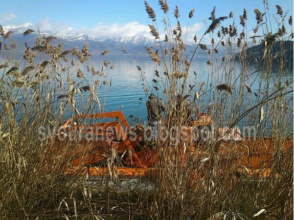 Ειδικό πλοιάριο επιστρατεύεται για τον καθαρισμό και το κλάδεμα καλαμιών στη λίμνη της Καστοριάς.