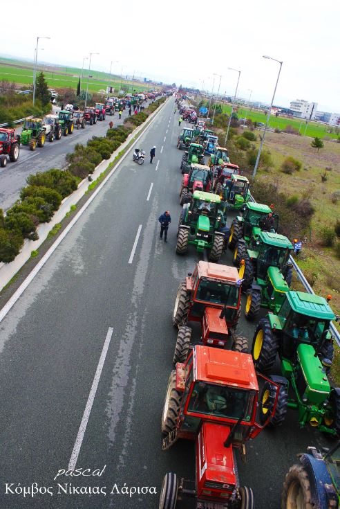 Σε εκατοντάδες, ανέρχονται τα τρακτέρ από Λάρισα και από Καρδίτσα τα οποία έχουν φθάσει στον κόμβο Νίκαιας επί της παλαιάς Εθνικής Οδού Αθηνών-Θεσσαλονίκης, μετά από μία μακρά διαδικασία μετακίνησης που ξεκίνησε από το πρωί, ενώ η προσέλευση συνεχίζεται.