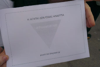«Η αγάπη ΔΕΝ είναι αμαρτία» έγραφε το φυλλάδιο που μοίραζαν στους πιστούς με την υπογραφή #PustiRiot. Το λογοπαίγνιο παραπέμπει στο γυναικείο πανκ συγκρότημα Pussy Riots, που είχε διαμαρτυρηθεί εναντίον του Ρώσου προέδρου Βλ. Πούτιν με ένα τραγούδι μέσα στον Καθεδρικό Ναό του Σωτήρος στη Μόσχα, με αποτέλεσμα, ορισμένα μέλη του να καταλήξουν στη φυλακή.
