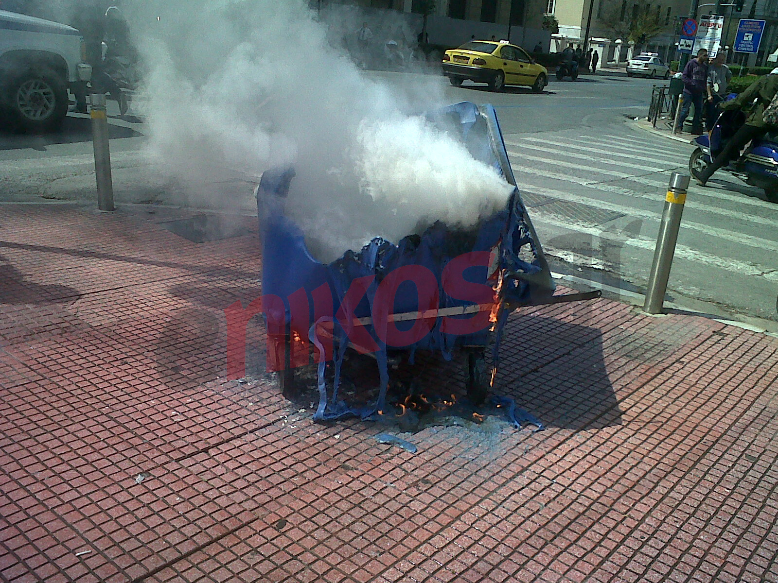 ΦΩΤΟ-Φωτιά σε κάδο στην Πανεπιστημίου