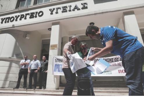 Συγκέντρωση στο υπουργείο Υγείας πραγματοποιούν αυτήν την ώρα οι εργαζόμενοι στα δημόσια νοσοκομεία.