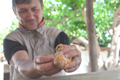 Ο αγρότης, κ. Αριστείδης Τσιρίκας είδε μία κότα να περιποιέται με ιδιαίτερη προσοχή ένα από τα οκτώ κλωσόπουλα που γέννησε και συνειδητοποίησε έκπληκτος πως το συγκεκριμένο είχε αντί για δύο πόδια, τέσσερα!