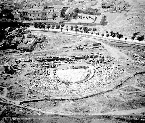 Το Θέατρο Διονύσου, η οδός Διονυσίου Αρεοπαγίτου και το Στρατιωτικό Νοσοκομείο “Μακρυγιάννη”, το 1903.