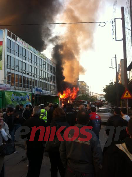 Οι άνδρες της πυροσβεστικής δίνουν μάχη με τις φλόγες προκειμένου να κατασβέσουν την πυρκαγιά σε κτιρίο της Θεσσαλονίκης, ενώ οι Κινέζοι ιδιοκτήτες της αποθήκης προσπαθούν να περισώσουν ό,τι μπορούν από την περιουσία τους.