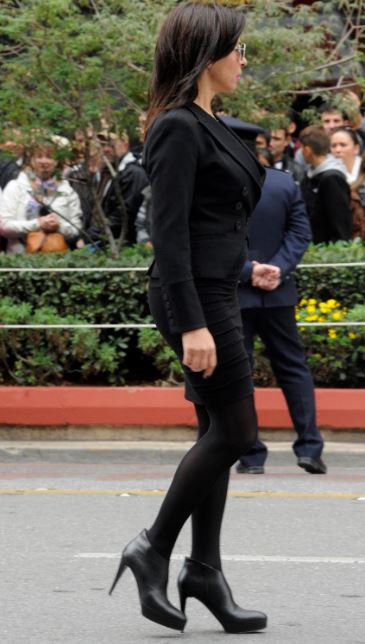Η μελαχρινή καθηγήτρια που σήμερα συνόδευε μαθητές στην μαθητική παρέλαση στο Σύνταγμα μαγνήτισε τα βλέμματα με την εμφάνισή της.