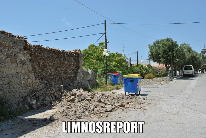 Από το ισχυρότατο σεισμό που ταρακούνησε τη Λήμνο δεν σημειώθηκαν μεγάλες καταστροφές ωστόσο παλιά κτίρια υπέστησαν ζημιές.