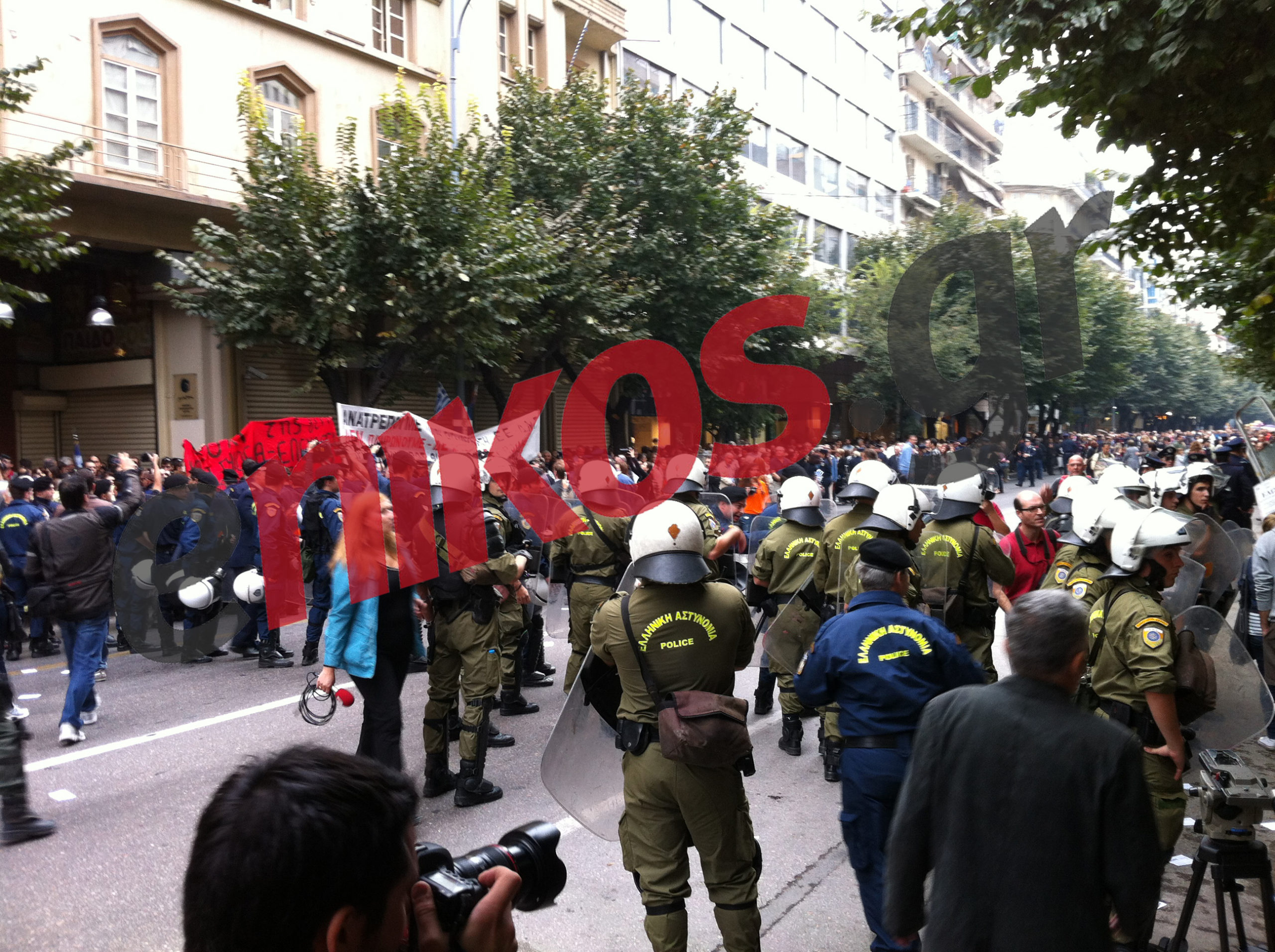 Αστυνομικοί, πίσω από τους διαδηλωτές, που …παρέλασαν αμέσως μετά τους μαθητές στην Θεσσαλονίκη…