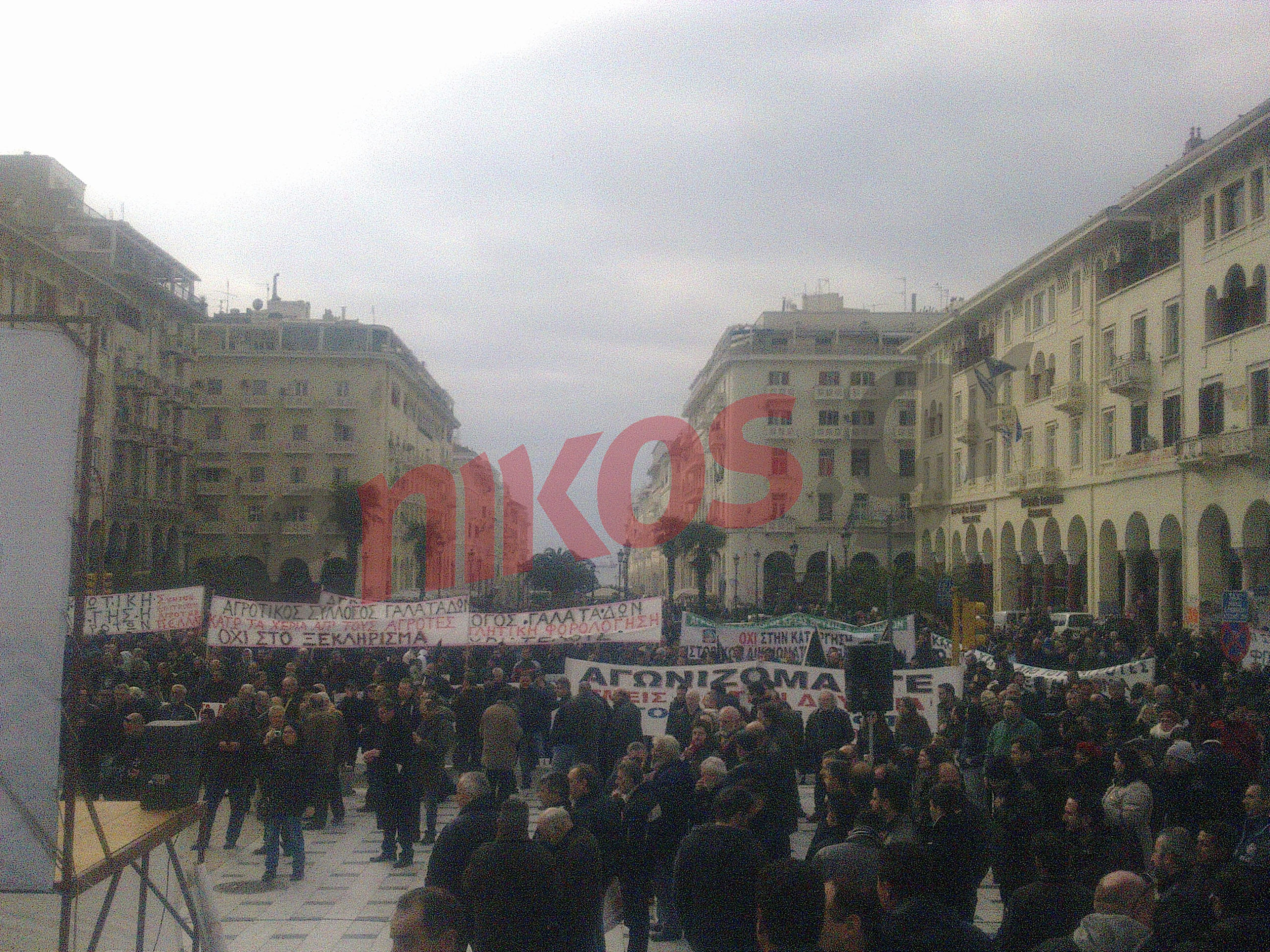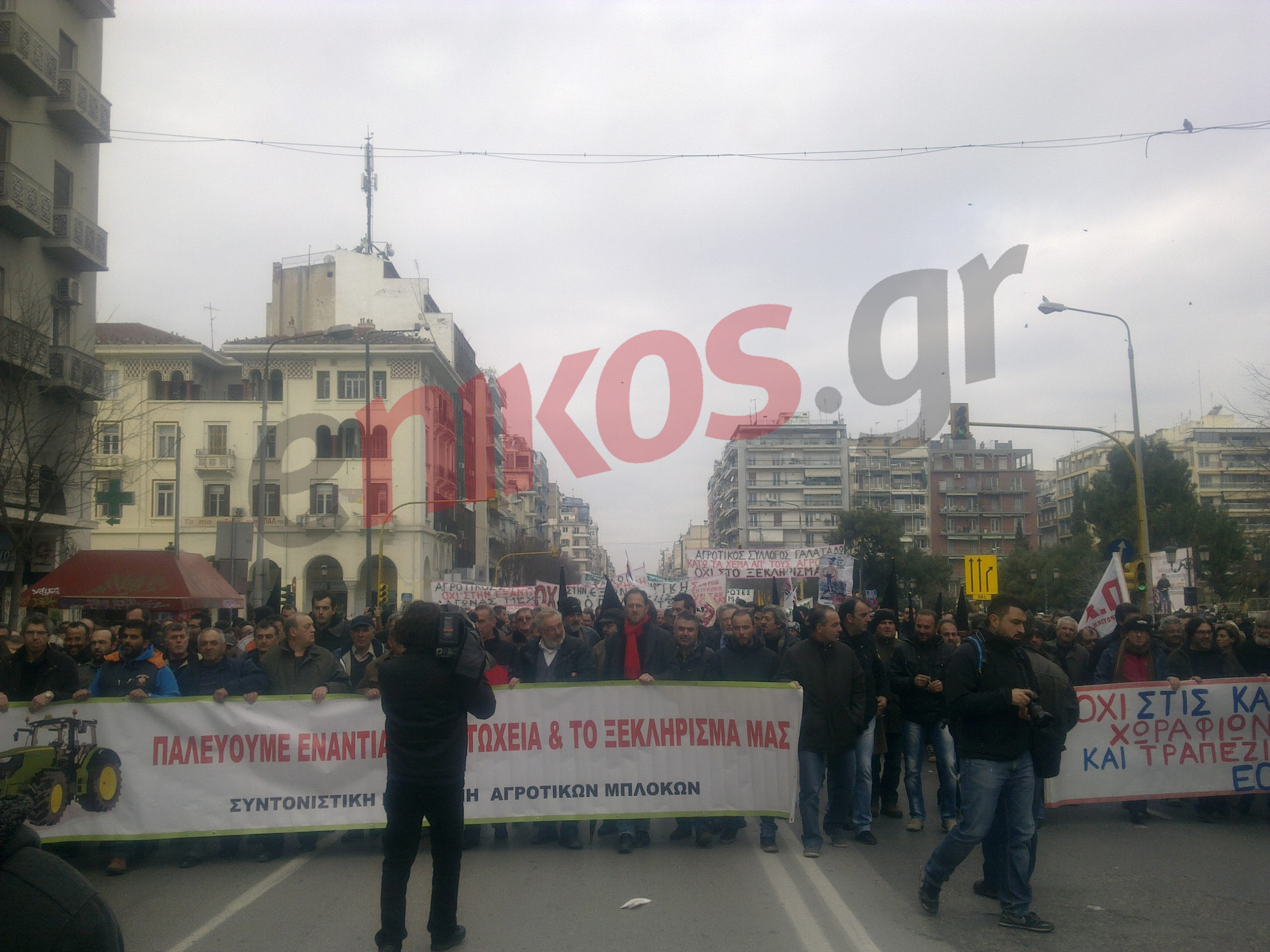 Αγρότες από όλη την χώρα κατέφτασαν με πούλμαν στην συμπρωτεύουσα όπου ήταν προγραμματισμένο συλλαλητήριο μπροστά από το άγαλμα του Βενιζέλου.