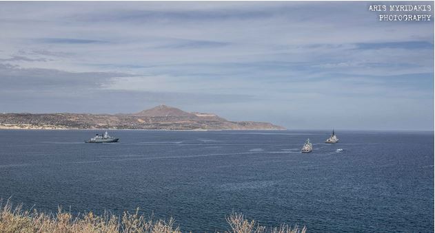 Εντύπωση και πολλά ερωτηματικά προκάλεσαν τα τρία πολεμικά πλοία, τα οποία απο το πρωί βρίσκονται κοντά στις Καλύβες, στον κόλπο της Σούδας Χανίων, ειδικά όταν η μία φρεγάτα είναι τουρκική.