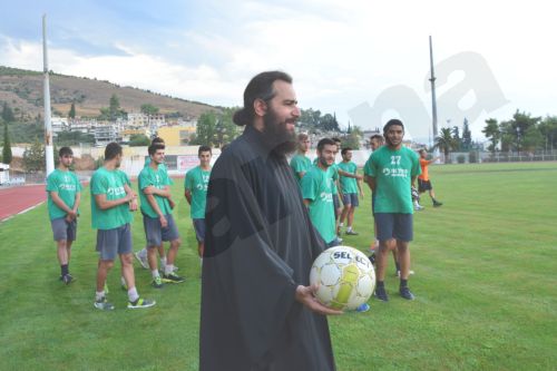 Ο ιερέας Βασίλειος Δέδες, συνοδευόμενος από τους παίχτες της ποδοσφαιρικής ομάδας του Παναργειακού, αμέσως μετά τη τέλεση του καθιερωμένου αγιασμού της ομάδας, στο στάδιο Άργους, έδειξε την αγάπη του για το ποδόσφαιρο και εκτέλεσε σουτ στο τέρμα της ομάδος για καλή τύχη.