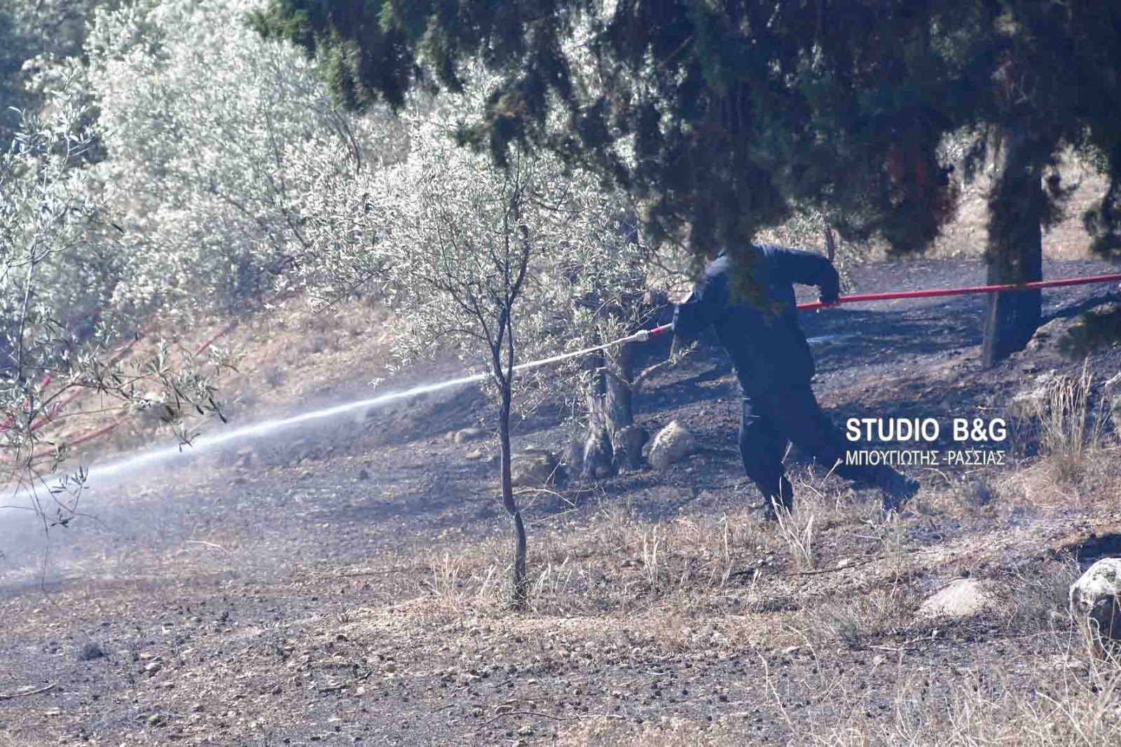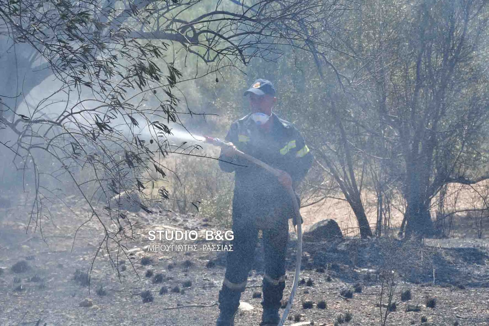 Πυρκαγιά εκδηλώθηκε το μεσημέρι της Δευτέρας σε περιοχή κοντά στη Νέα Τίρυνθα του Δήμου Ναυπλιέων στην Αργολίδα.Η φωτιά ξέσπασε από άγνωστη μέχρι στιγμής αιτία, σε αγροτοδασική έκταση με ελαιόδενδρα, ενώ κάηκαν και μελίσσια μεταξύ Νέας Τίρυνθας και Παναριτίου στον λόφο της Αγίας Παρασκευής.Η άμεση επέμβαση της πυροσβεστικής υπηρεσίας, αλλά και των κατοίκων, απέτρεψε τα χειρότερα.