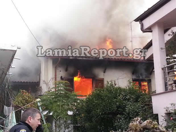 ΦΩΤΟ-Καίγεται σπίτι στη Λαμία