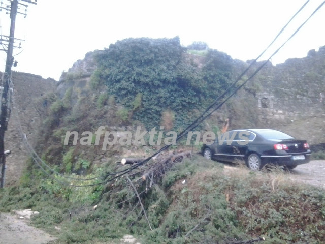 Η Ναύπακτος από την κακοκαιρία δεν βγήκε αλώβητη. Κεραυνοί κατέστρεψαν οχήματα, προκάλεσαν την πτώση δέντρων και πυροδότησαν πυρκαγιά σε ΙΧ.