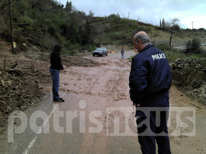Στο σημείο μετέβη και αστυνομικός από το Α.Τ. Ανδρίτσαινας που ειδοποίησε το Δήμο για να στείλει κάποιο μηχάνημα να ανοίξει το δρόμο.