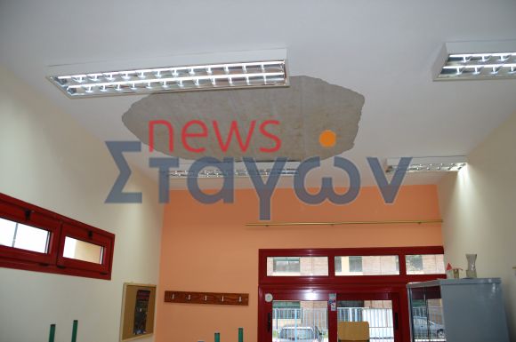 Ένα μεγάλο κομμάτι σοβά, διαμέτρου δύο μέτρων περίπου, έπεσε από το ταβάνι αίθουσας του 5ου δημοτικού σχολείου Καλαμπάκας.