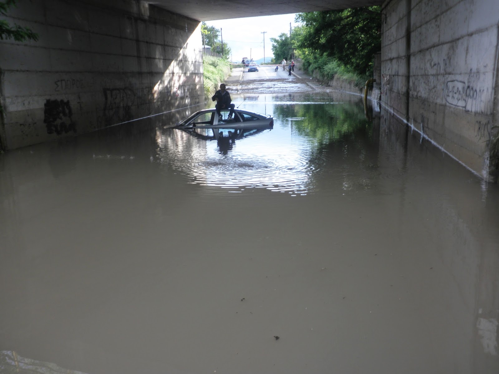 Παρά τις συστάσεις της τροχαίας να μην επιτραπεί η διέλευση των οχημάτων κάτω από τη γέφυρα, οδηγός ΙΧ οχήματος παραβίασε τις απαγορευτικές κορδέλες επισήμανσης που στήθηκαν, με αποτέλεσμα να εγκλωβιστεί κάτω από τη γέφυρα, καθώς το νερό ξεπέρασε το ένα μέτρο.