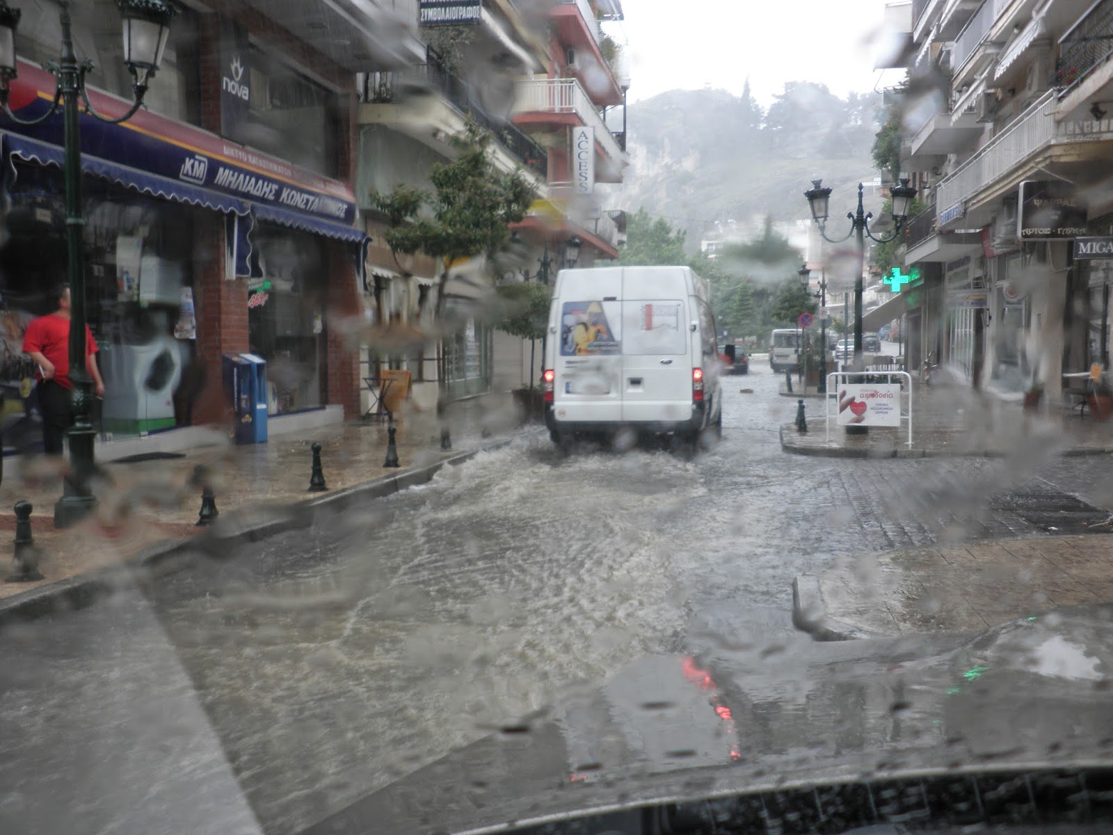 Στον δήμο Ηράκλειας, μέσα σε λίγα λεπτά πλημμύρισαν υπόγεια καταστήματα και σπίτια, ενώ η δυνατή βροχή, μετέτρεψε τους δρόμους σε χείμαρρους παρασύροντας καρέκλες και τραπέζια από καταστήματα. Μετά την άμεση επέμβαση κλιμακίου της πυροσβεστικής υπηρεσίας στην περιοχή, αντληθήκαν τα νερά από τα βουλωμένα, από φερτές ύλες, φρεάτια και η κατάσταση αποκαταστάθηκε αφήνοντας πίσω της μόνο υλικές ζημιές σε σπίτια και καταστήματα της πόλης της Ηράκλειας.