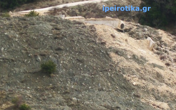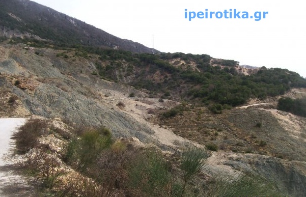 Αριστερά βλέπετε τον δρόμο ο οποίος ξαφνικά… χάνεται αφού έχει πέσει πάνω το βουνό. Η συνέχεια του δρόμου είναι δεξιά στο βάθος της φωτογραφίας.