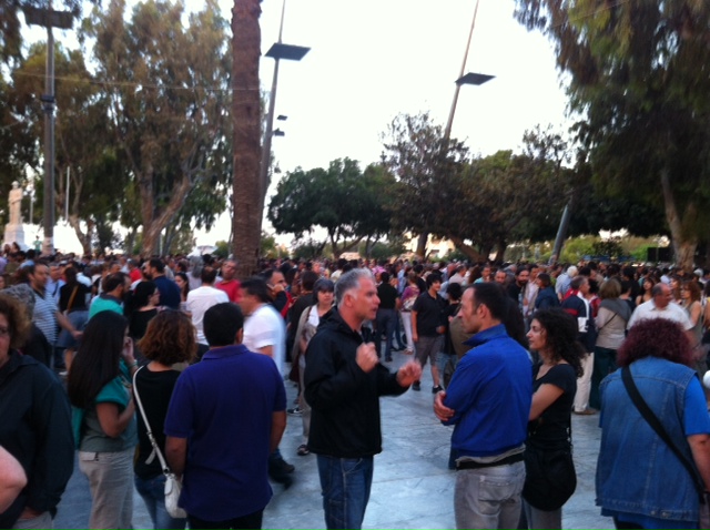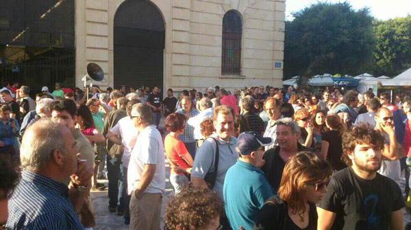 Εργαζόμενοι της ΕΡΑ Ηρακλείου έχοντας στο πλάι τους και εκπροσώπους συλλόγων και φορέων, συγκεντρώθηκαν από τις 6 το απόγευμα στην πλατεία Ελευθερίας, αντιδρώντας στο κλείσιμο του ΕΡΤ.