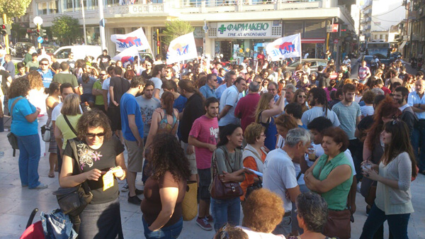 Την αντίθεσή τους στο λουκέτο της ΕΡΤ εκφράζουν oi διαδηλωτές και στο Ηράκλειο.