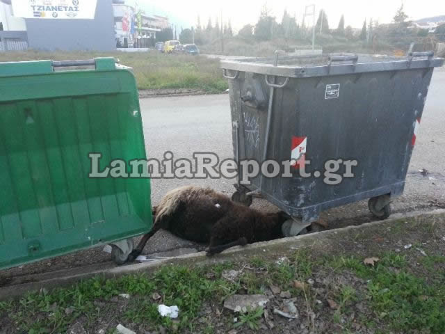 Ένα μακάβριο και αποτρόπαιο θέαμα αντίκρισαν κάτοικοι της Λαμίας, που είδαν ένα νεκρό πρόβατο πεταμένο ανάμεσα σε δύο κάδους απορριμμάτων , ενώ λίγα μέτρα πιο πέρα, έκοβαν βόλτες αδέσποτα σκυλιά. Προβληματισμό προκαλεί πάντως πώς είναι δυνατόν ο άνθρωπος αυτός που «πέταξε» το άτυχο ζώο στον δρόμο, να μην αναλογιστεί τους κινδύνους που μπορεί να επιφέρει στην δημόσια υγεία η ενέργεια του.