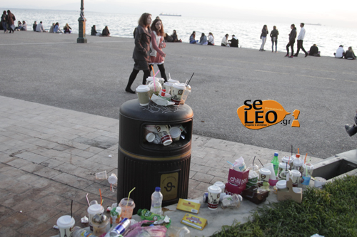 Σήμα κατατεθέν ο δημοφιλής ελληνικός καφές αλλά και τα σκουπίδια που «στήνουν» ένα αντιαισθητικό σκηνικό στη συμπρωτεύουσα.