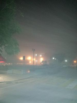 Βαρύ πέπλο ομίχλης απλώθηκε το βράδυ στην πόλη μετατρέποντας τα Τρίκαλα σε … Λονδίνο.