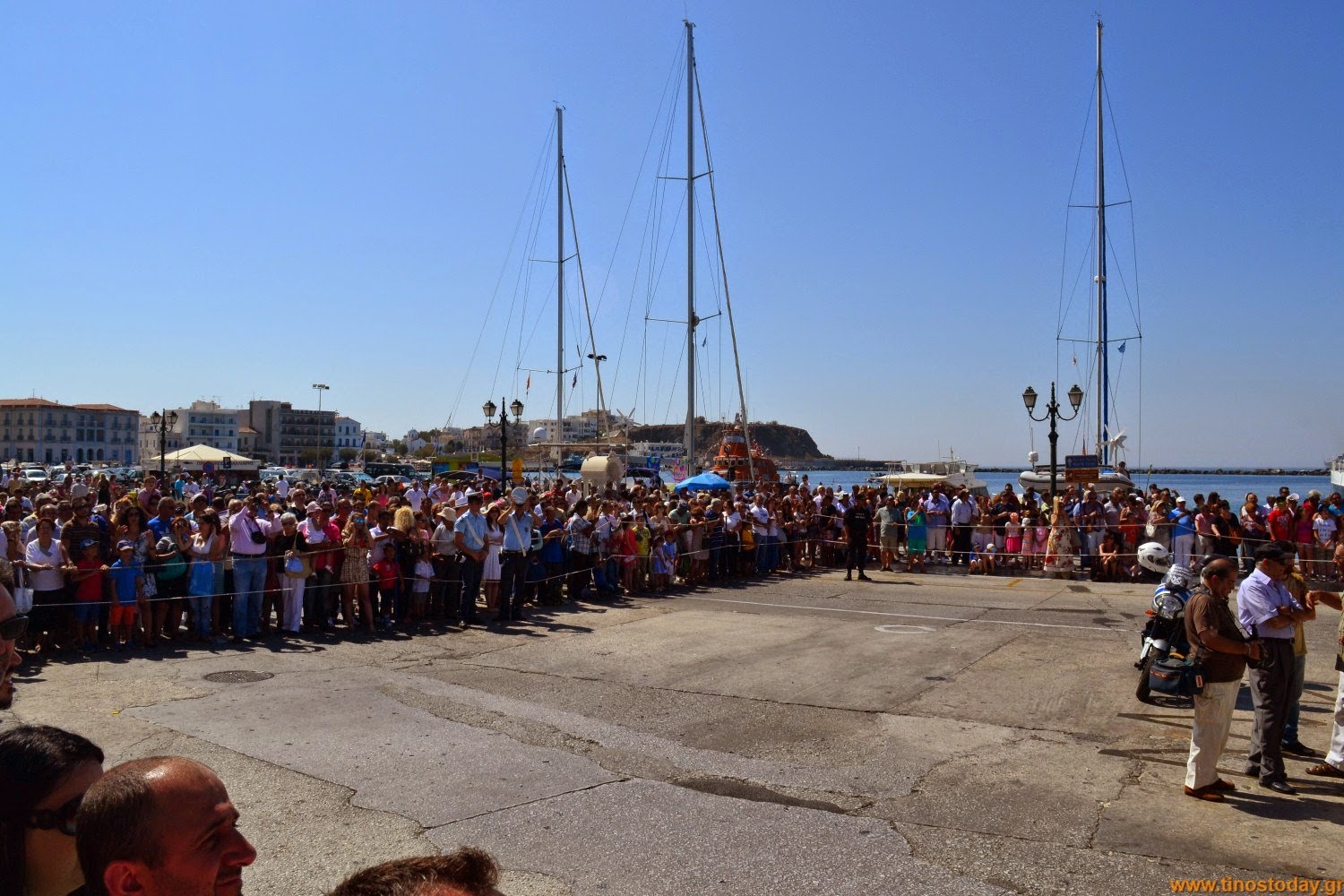 Με την παρουσία πλήθους πιστών εορτάστηκε και φέτος στην Τήνο η ημέρα της Παναγίας. Προσκυνητές όλων των ηλικιών βρέθηκαν από νωρίς το πρωί στον δρόμο που ενώνει το λιμάνι με την εκκλησία της Ευαγγελίστριας, να περιμένουν υπομονετικά την έξοδο της θαυματουργής εικόνας της Παναγίας από το ναό και την τελετουργική κάθοδό της στη Χώρα, που θα τους επέτρεπε να περάσουν από κάτω και να λάβουν την ευλογία της.