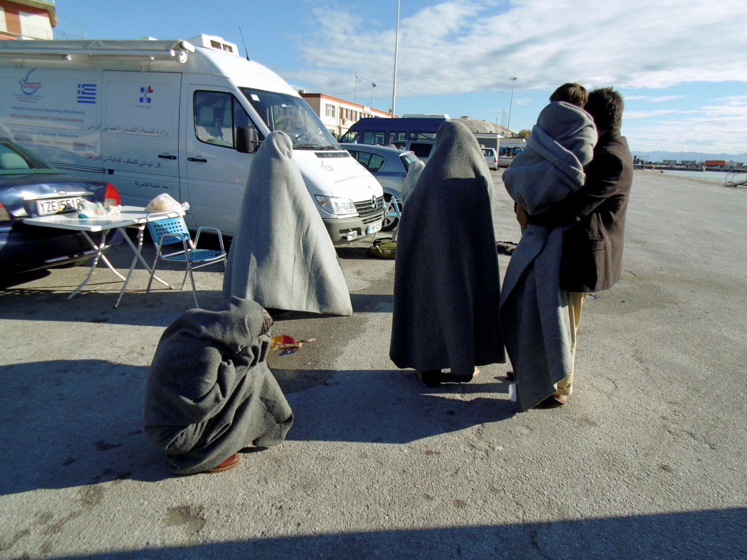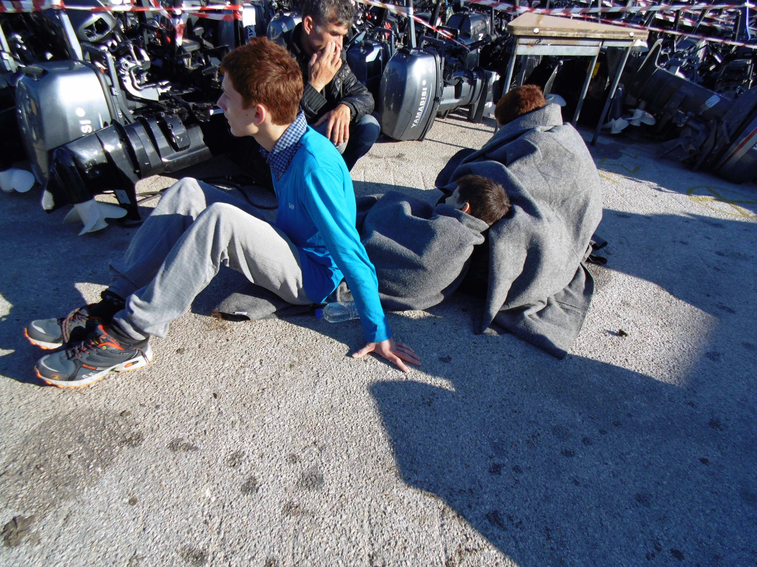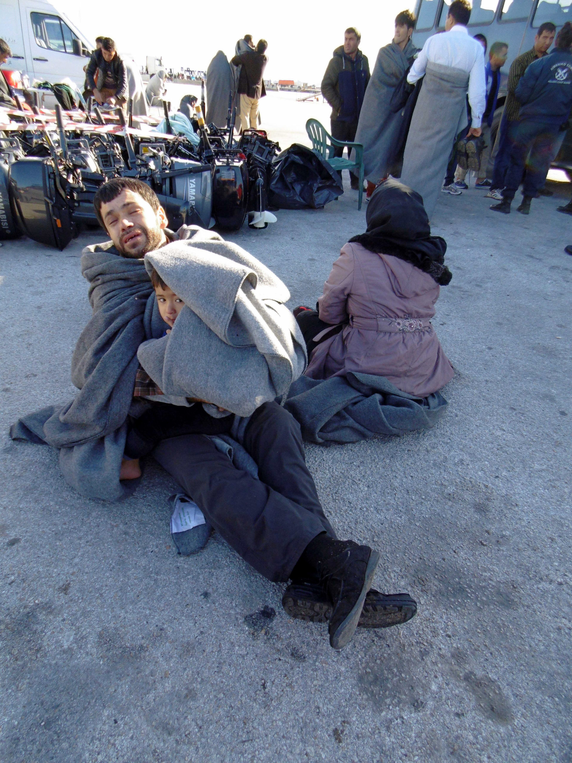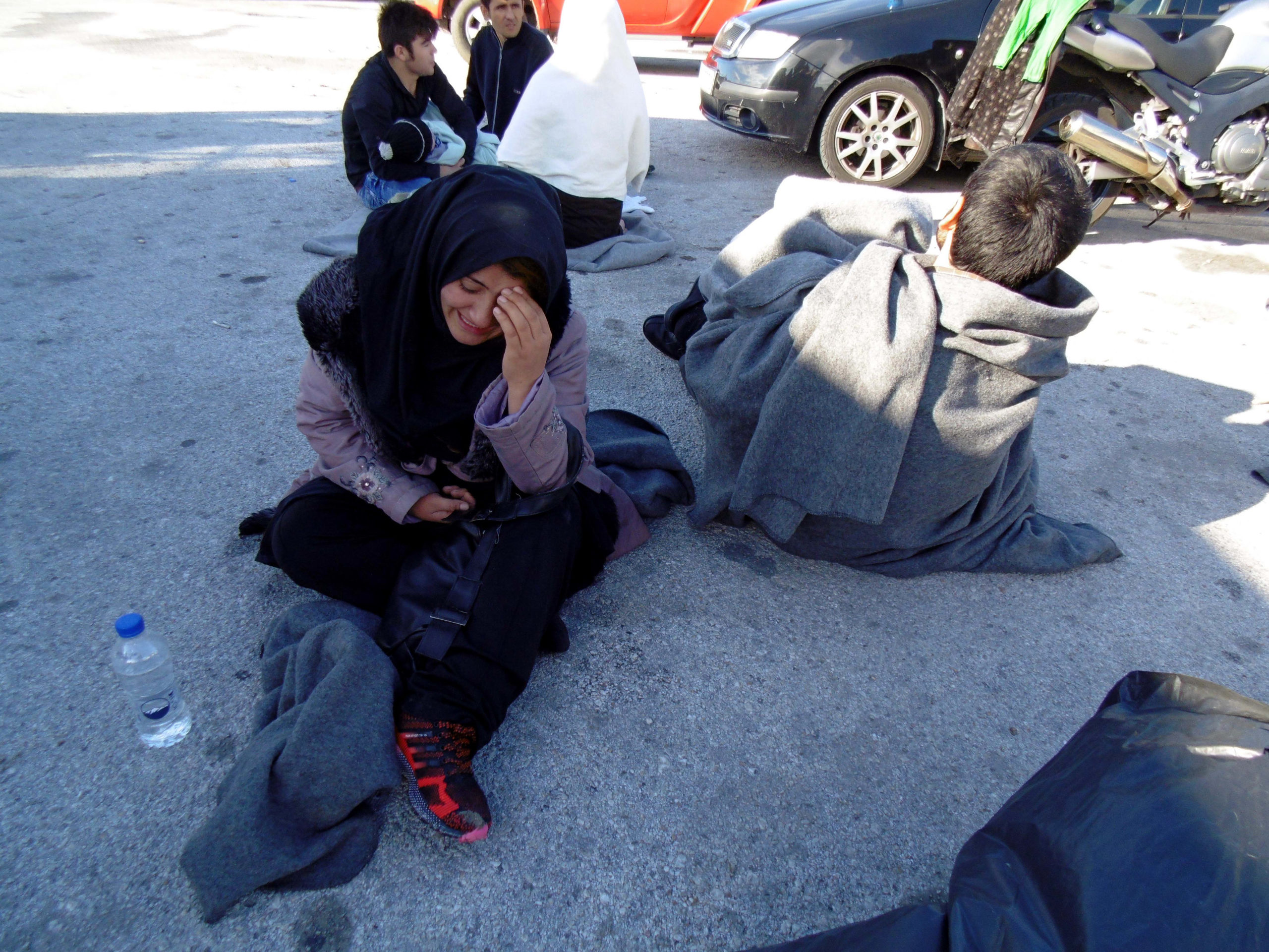 Με δάκρυα στα μάτια οι διασωθέντες ναυαγοί μετανάστες από το Αφγανιστάν σκεπασμένοι με κουβέρτες θρηνούν στο λιμάνι της Μυτιλήνης την απώλεια των δικών τους ανθρώπων.