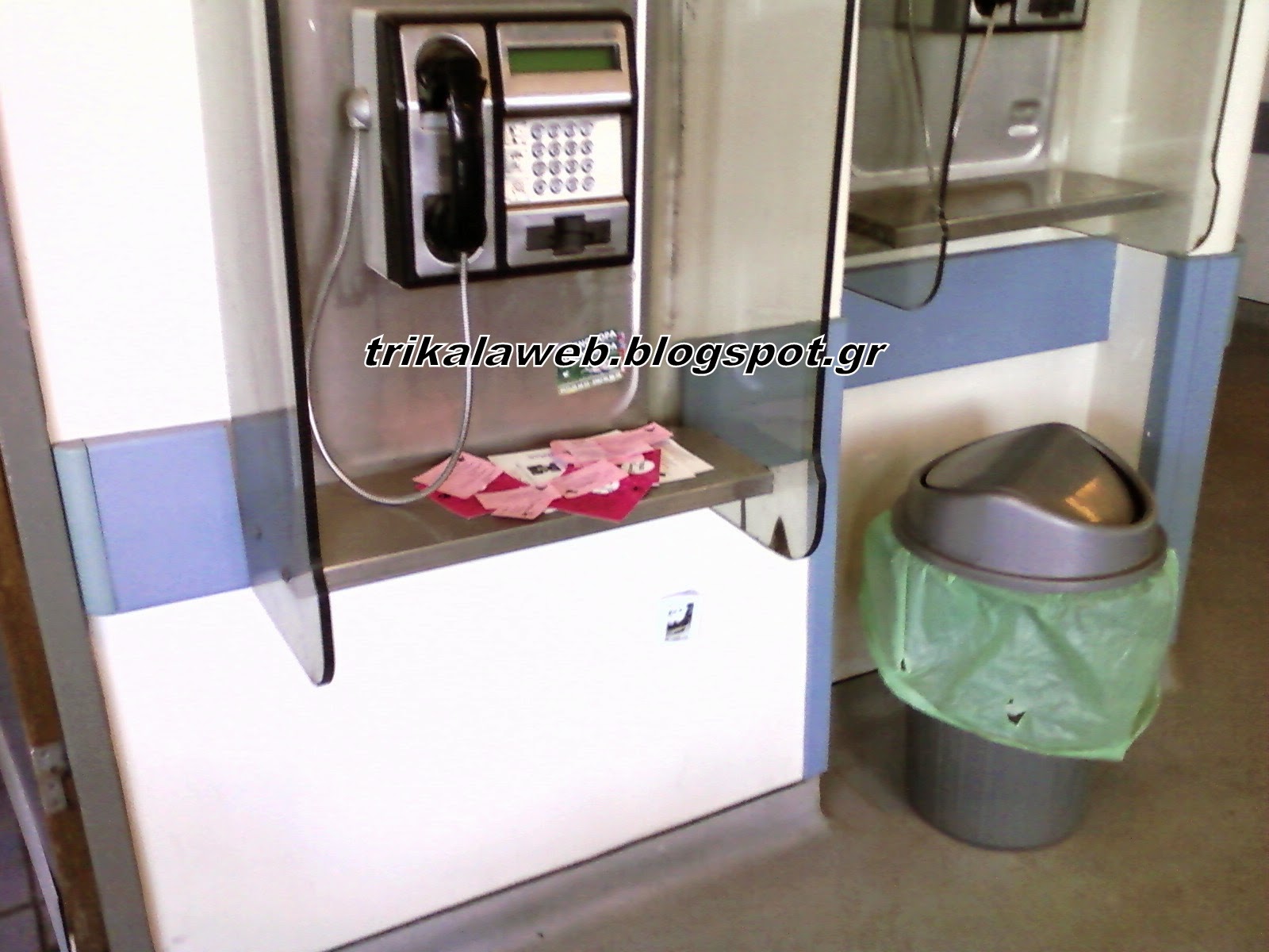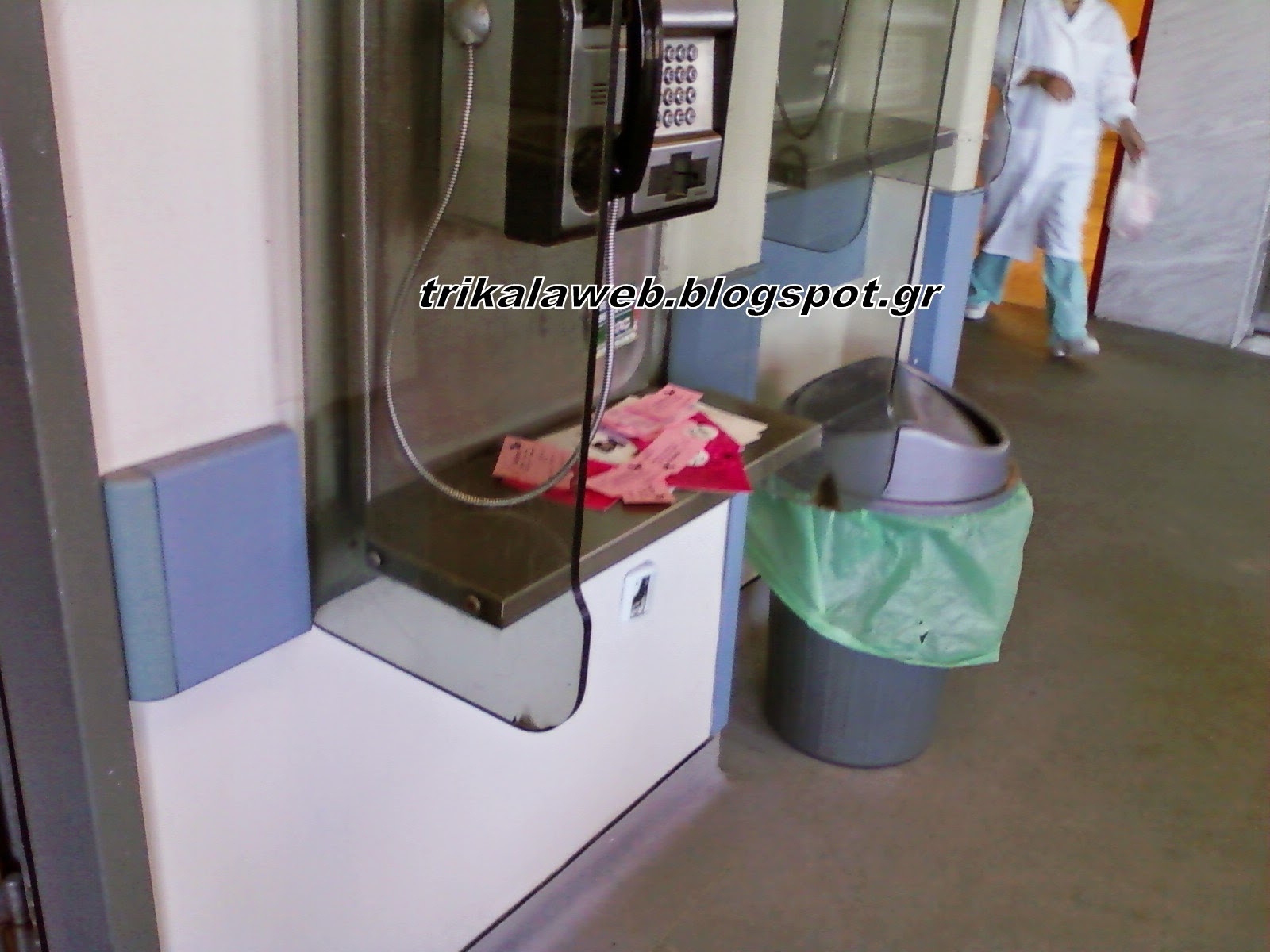 Όπως φαίνεται και στις φωτογραφίες του trikalaweb, στον τηλεφωνικό θάλαμο του νοσοκομείου υπάρχουν πολλά διαφημιστικά φυλλάδια του μέντιουμ που υπόσχεται προβλέψεις…
