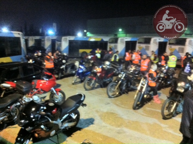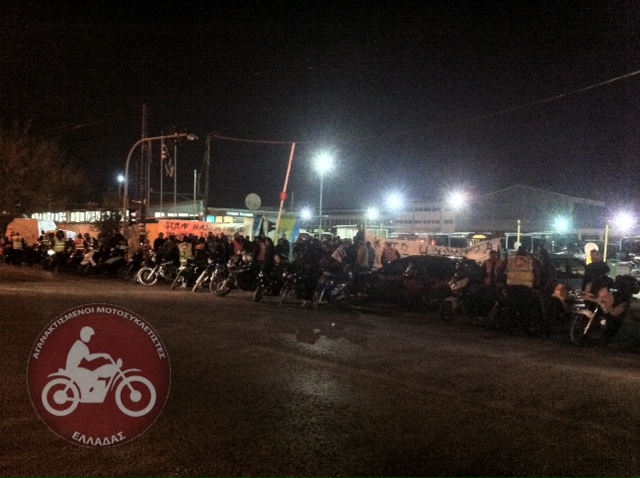 Μοτοπορεία συμπαράστασης στα αμαξοστάσια της ΕΘΕΛ στην Πέτρου Ράλλη και στο Ρέντη πραγματοποίησαν οι Αγανακτισμένοι Μοτοσυκλετιστές Ελλάδας.