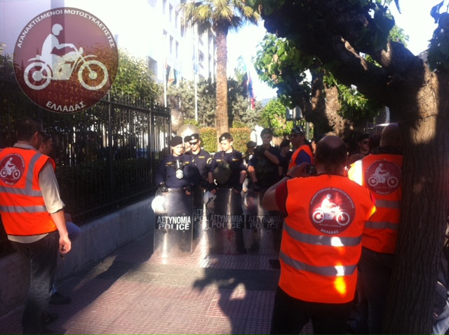 Αυτή την ώρα οι Αγανακτισμένοι Μοτοσυκλετιστές Ελλάδας βρίσκονται στα κεντρικά γραφεία της “Ελληνικός Χρυσός Α.Ε.” για την παράδοση ψηφίσματος διαμαρτυρίας ως ένδειξη συμπαράστασης στο «δίκαιο αγώνα των κατοίκων της Χαλκιδικής».
