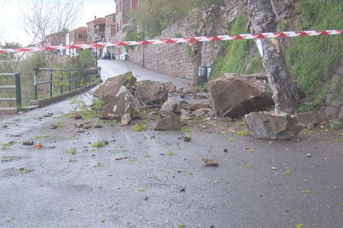 Βράχοι αποκολλήθηκαν μέσα στον οικισμό του Μόλυβου στο κεντρικό σημείο της Μήθυμνας ύστερα από δυνατή νεροποντή. Οι βράχοι έπεσαν στο οδόστρωμα, ευτυχώς χωρίς τραυματισμούς και χωρίς να προκληθούν υλικές ζημιές.