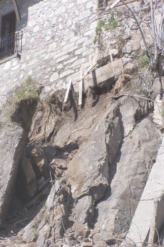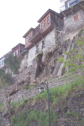 ΦΩΤΟ-Μυτιλήνη: Κατάρρευση βράχων μέσα σε οικισμό