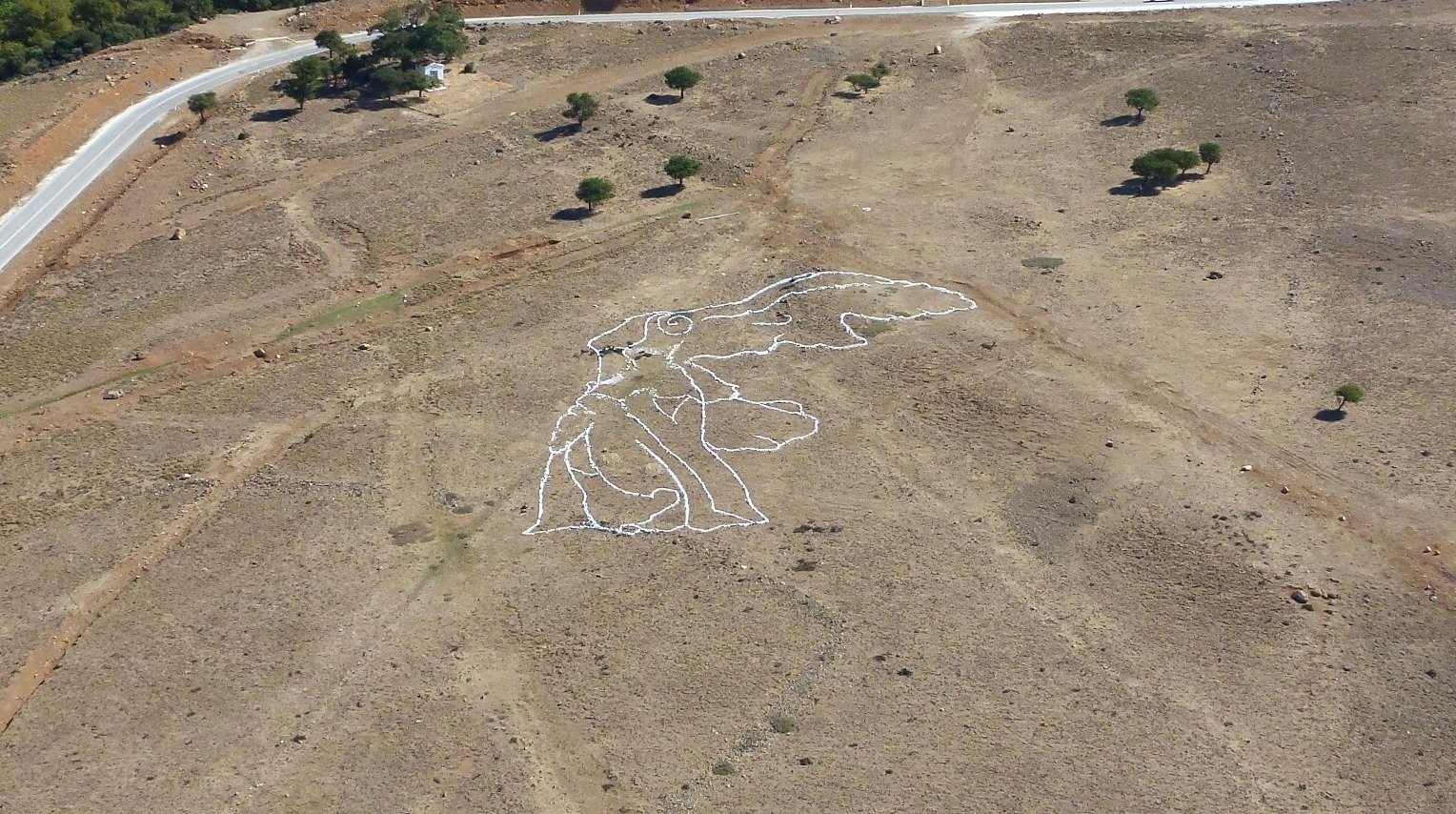 Με τη συμμετοχή είκοσι εθελοντών δημιουργήθηκε το περίγραμμα του αγάλματος σε κάτοψη 50 x 70 μέτρων περίπου. Χρησιμοποιώντας την τεχνική του land art, με πέτρες που μαζεύτηκαν από την γύρω περιοχή, έφτιαξαν το περίγραμμα της Νίκης της Σαμοθράκης πάνω στη γη.