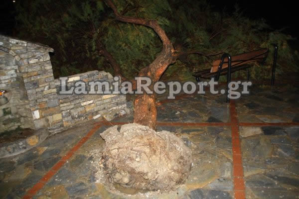 Λόγω του δυνατού αέρα αλλά και της καταρρακτώδης βροχής, πολλά δέντρα ξεριζώθηκαν συγκεκριμένα στην παραλία της Γλύφας, στην ανατολική Φθιώτιδα.
