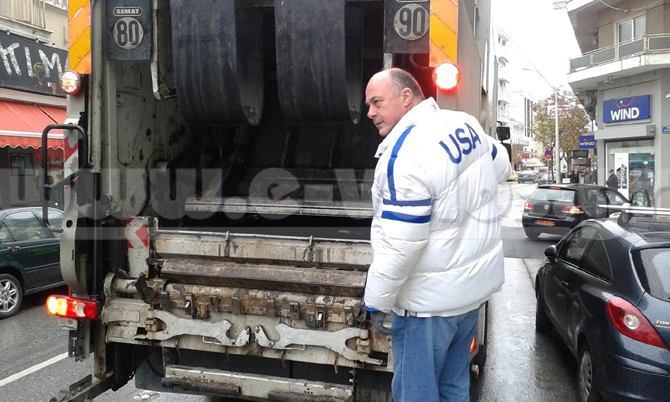 ΦΩΤΟ-Ο Μπέος ανέβηκε σε απορριμματοφόρο