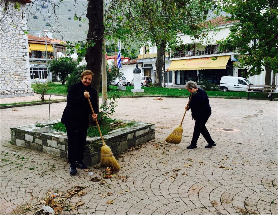 Ο δήμαρχος άρπαξε τη σκούπα και βγήκε, για να καθαρίσει μόνος του την πλατεία της Φαρκαδόνας, ενόψει 28ης Οκτωβρίου.