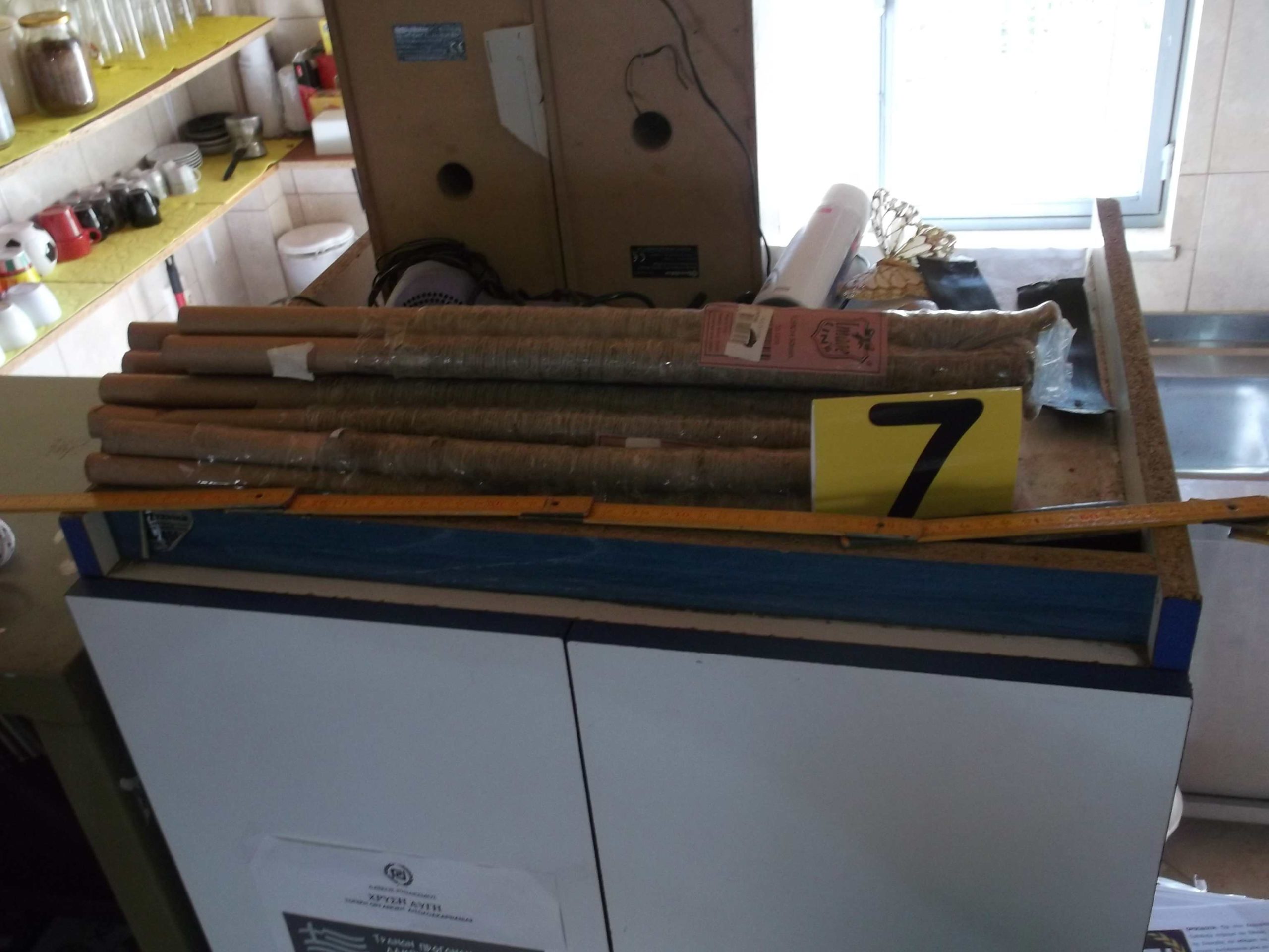 Ανάμεσα στα αντικείμενα είναι καλαμίδες αστυνομικής διμοιρίας καθώς και μια φυσιγγιοθήκη που ανήκει στον πρώην αστυνομικό φρουρό του βουλευτή της Χρυσής Αυγής Κωνσταντίνου Μπαρμπαρούση.