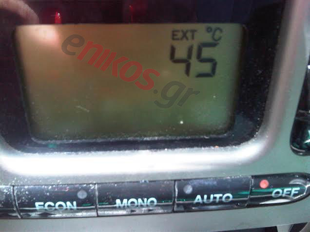Αν έχετε παρκάρει στον ήλιο δεν αποκλείεται να δείτε το θερμόμετρο του αυτοκινήτου σας να δείχνει ακόμη και… 45 βαθμούς όπως στη παρακάτω φωτογραφία του αναγνώστη μας…